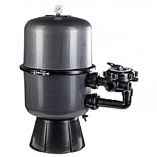 Vysoce odolná dvoudílná nádoba z polypropylenu. Ideální pro bazény s objemem vody 40 – 55 m3. Boční šesticestný ventil.