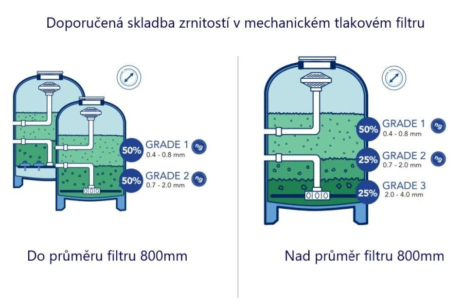 Filtr do průměru 800 mm: 50% Grade 1 / 50 % Grade 2