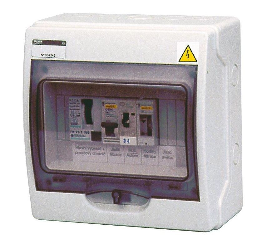 - přepínač – automatický / ruční režim chodu filtrace