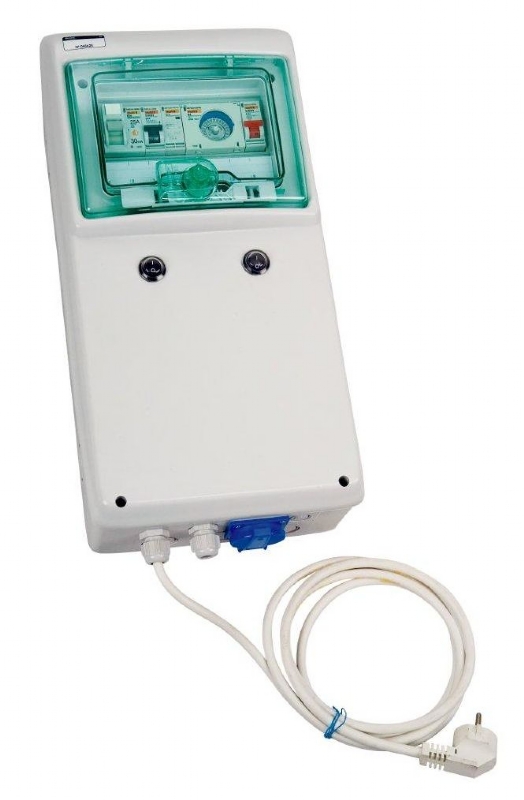 Automatické ovládaní F1S600P3 - jednoduchá montáž. Automatika je vybavena proudovým chráničem 30 mA, jištěním motoru filtrace, spínacími hodinami pro časové spínaní doby filtrování, jištěním přívodu protiproudu, transformátorem 230/12V 600W. Na přední straně rozvaděče je spínač pro okamžité zapnutí filtrování, například při vysávaní, a spínač světel.