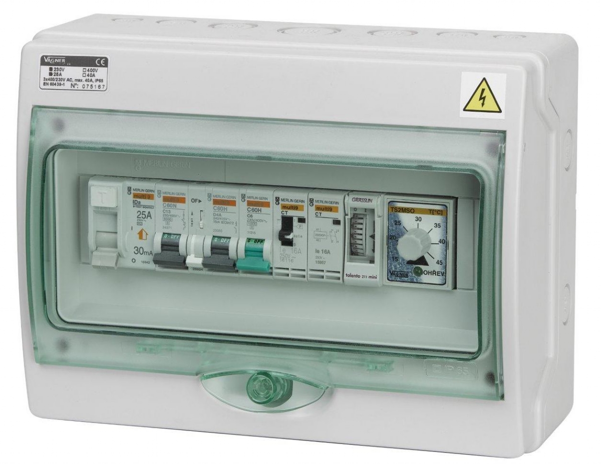 - nastavení požadované teploty bazénové vody přímo v rozvaděči