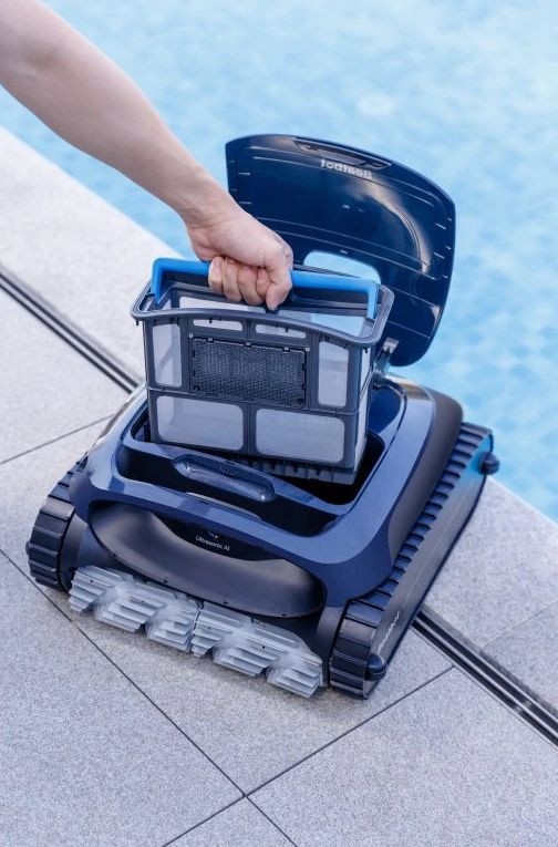 AquaSense 2 je koncipovaný pro komfort: žádné zamotané kabely, žádné tahání hadic. Po vytažení z vody robot automaticky vypouští vodu, takže manipulace je znatelně lehčí a čistší.