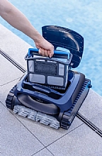Odpadá nepříjemné „lovení robota“ hákem z hloubky bazénu. Navíc díky systému SmartDrain™ začne robot při vytažení automaticky vypouštět vodu, takže je výrazně lehčí a manipulace je snadná i jednou rukou.