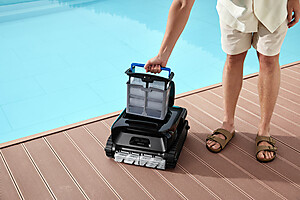 Bezdrátový provoz znamená absolutní volnost pohybu. Po dokončení cyklu se robot automaticky vynoří na hladinu, zaparkuje u okraje bazénu a díky systému SmartDrain™ se při vytažení okamžitě odlehčí vypuštěním vody.