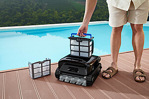 Robot tak nahrazuje nejen bazénový vysavač, ale částečně i pomocné systémy úpravy vody.