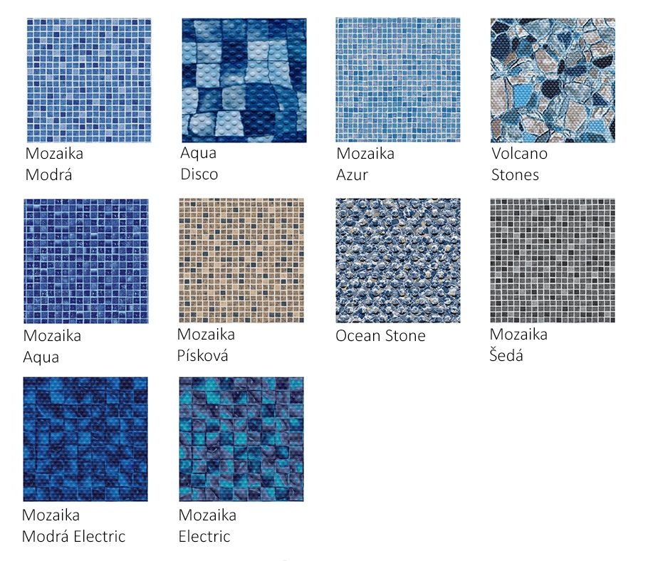 AVfol DECOR nabízí vzory klasických i modernizovaných mozaikových obkladů a také vzory inspirované přírodními jevy. Fólie řady DECOR dodají bazénu perfektní a moderní vzhled.