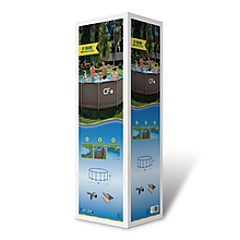 Pevná trubková konstrukce z oceli zajišťuje stabilitu i při plném napuštění 6,7 m3 vody. Zavěšená bazénová fólie je vyrobena z trojvrstvého PVC materiálu s výztužnou síťovinou, která zvyšuje odolnost proti protržení, mechanickému namáhání i UV záření.