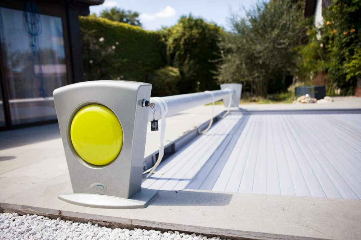 Elektrická varianta řízená dálkovým ovládáním Wi-key nebo aplikací LivePool přímo z Vašeho mobilu nebo solární varianta s klíčovým spínačem umístěným ve stojně rolety.