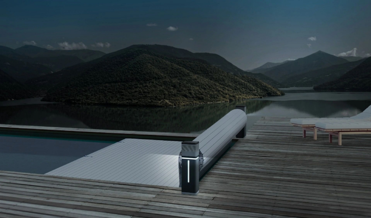 Elektrická varianta řízená dálkovým ovládáním Wi-key nebo aplikací LivePool přímo z Vašeho mobilu nebo solární varianta s klíčovým spínačem umístěným ve stojně rolety.