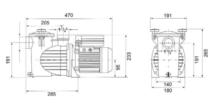 Samonasávací čerpadlo s velkokapacitním předfiltrem, napojení: 1 1/2" nebo 50mm, krytí motoru: IP 55, 2850 ot./min.