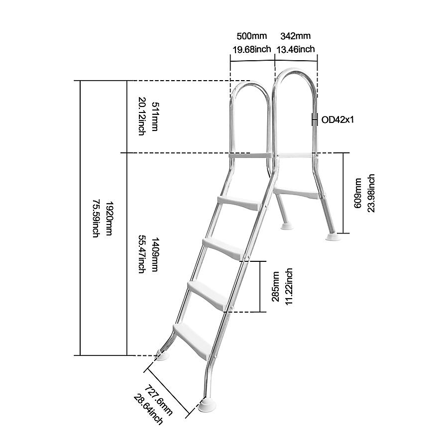 - Stabilita: Schůdky mají 1 schod na vnější straně a 4 schody na vnitřní straně bazénu, což usnadňuje pohodlný a bezpečný přístup.