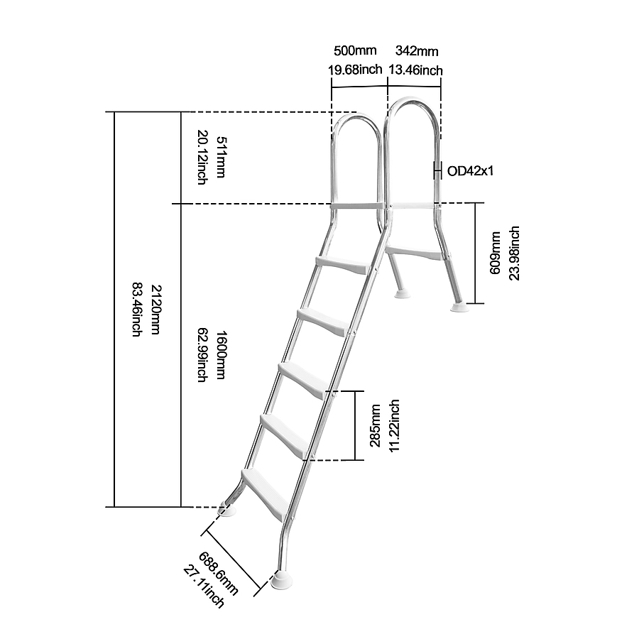 - Stabilita: Schůdky mají 1 schod na vnější straně a 5 schodů na vnitřní straně bazénu, což usnadňuje pohodlný a bezpečný přístup.