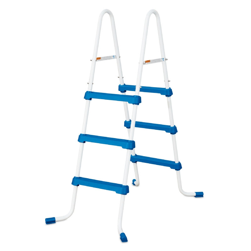 Bazénové schůdky 91 cm pro nadzemní bazény mají kovový rám a plastové stupně s bezpečnostním protiskluzným povrchem. Vysokou nosností až 150 kg. Jsou vyrobeny z vysoce kvalitních ocelových trubek s lakovanou povrchovou úpravou, vyznačují se proto velmi dlouhou životností. Díky lehké konstrukci pohodlně vložíte či vyjmete z bazénu.