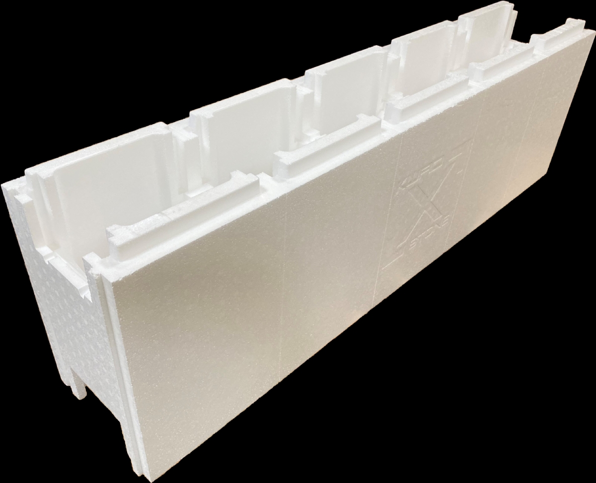 Polystyrenové tvárnice jsou typu PS 25 (25 kg materiálu na 1m3), mají bílou barvu a rozměr 1,25 x 0,375 x 0,25 m.
