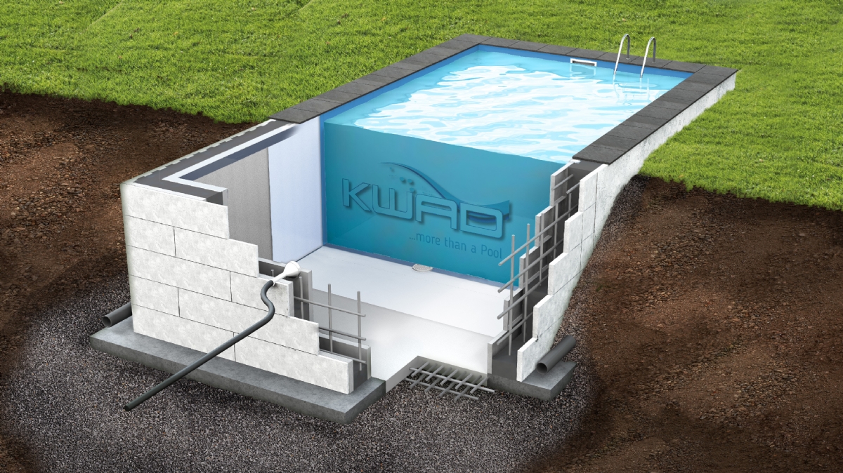 Jedná se o inovativní řešení polystyrenových tvárnic, které se používají pro stavbu stěn bazénu ze ztraceného bednění. Polystyrenové tvárnice jsou pevné bloky o délce 1,25 metr. Uvnitř jsou duté a z horní a spodní strany mají profil, aby do sebe precizně zapadly (lze přirovnat ke kostkám lega). Tvárnice se vylévají betonem, který se vyztuží stavební ocelí.
