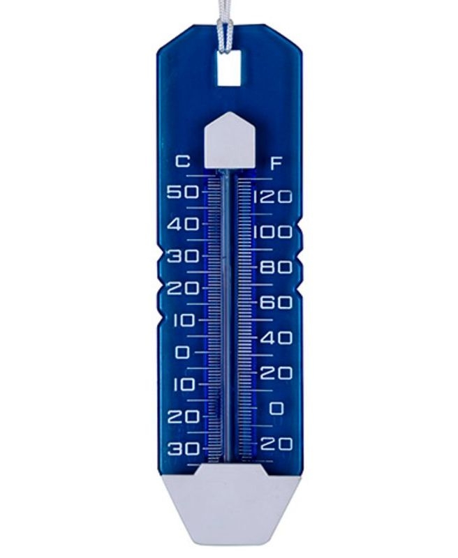 Bazénový teploměr ponorný - neplovoucí. Teploměr do bazénu nebo vířivky spolehlivě upevníte pomocí provázku. Teploměr měří teplotu v rozsahu 0 - 50 °C. Délka teploměru je 27 cm. Pro měření teploty vody v hloubce.
