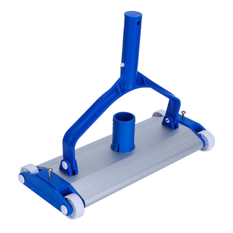 Bazénový ruční hliníkový vysavač. Vysavač je vybaven speciálním závažím, díky kterému je při vysávání dna bazénu stabilní. Vysavač má čtyři kolečka pro lepší pojezd v bazénu. Připojení je možné na standardní teleskopické tyčky a na vysavačové hadice 38 mm. S tímto kvalitním ručním vysavačem bude váš bazén vždy dokonale čistý.