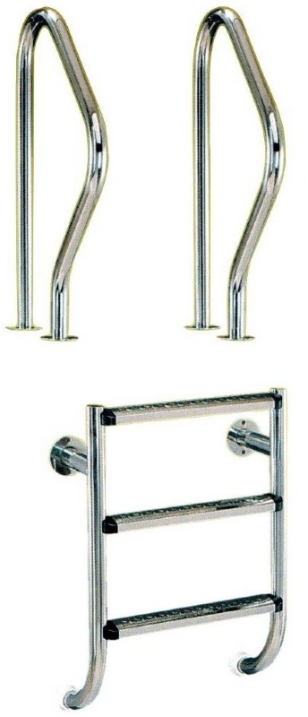 Žebříky jsou určeny pro privátní a komerční bazény. Jsou vyrobeny z leštěné nerez oceli AISI 304 průměru 43 mm.