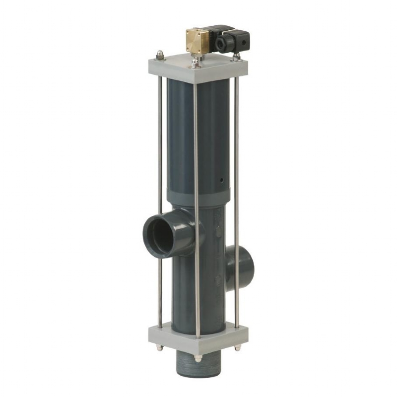 Vysoce odolné materiály: tělo z PVC-U, vnitřní části z nerezu 316, těsnění Viton®/PTFE (odolné vůči ozonu)