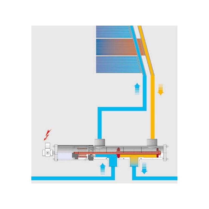 Švýcarský pneumatický ventil pro automatické přepínání toku vody mezi dvěma výstupy. Ideální pro bypassové okruhy, přepínání toku vody do solárního ohřevu, vodních atrakcí nebo jiných technologií.
