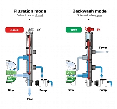 Špičkový švýcarský ventil pro automatické zpětné proplachy pískových filtrů.