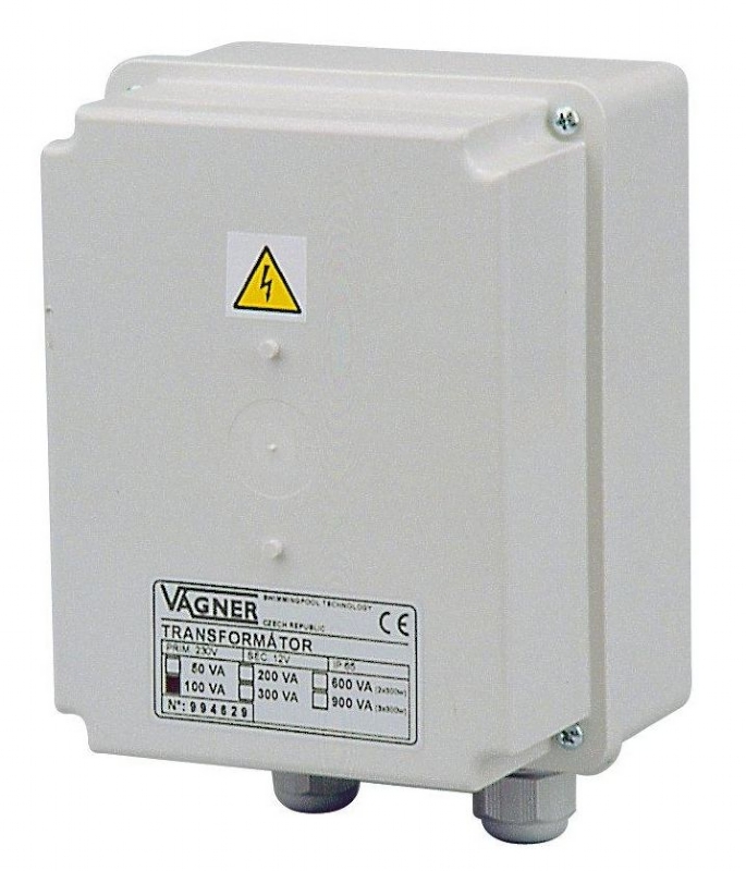 Určen pro podvodní světlomety do 50 W. Transformátory jsou umístěny v krabičce ze speciálního termo-odolného plastu - IP 65.