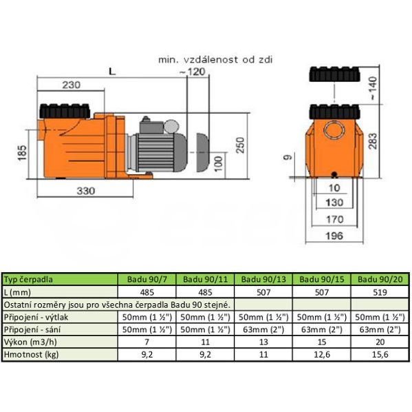 Samonasávací čerpadlo vysoké kvality pro větší privátní bazény. Vhodné i pro slanou vodu. 20 m3/h 400 V. (dřívější označení 90/20)