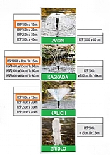 - plně vybavené s vodními efekty, regulovatelnou teleskopickou trubkou (20 - 48 cm) a přípojkou na vodní chrlič