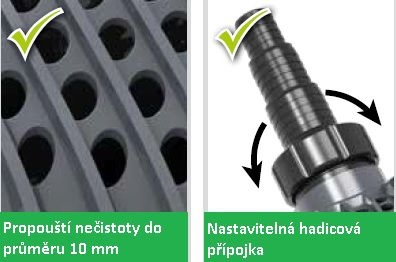 - Možnost čerpání nečistot až do velikosti 10 mm