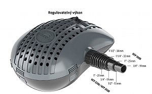 Má velice nízkou spotřebu elektrické energie a vysoký stupeň účinnosti. Při vývoji byl kladen důraz na tichý chod, funkčnost a snadné čištění. Čerpadla jsou určená pro filtrování jezírek do objemu 10 m3, okrasné nádrže, jezírka s rybami, fontány, pro připojení k filtračním systémům, potůčkům, vodopádům, dekorační fontánám, k cirkulaci a prokysličování vody. Při stálém provozu je znát nízká spotřeba. Snadná údržba díky jednoduchému rozebrání, bez použití nářadí. Možnost regulace výkonu čerpadla mechanicky na jeho krytu. Oceníte při budování potůčku, vodopádů. Díky regulaci si určíte šířku a průtok potůčku. Platí pravidlo že objem jezírka by se měl přečerpat 5x za24 hodin, nastavitelná univerzální přípojka se vždy zkracuje na průměr použité hadice, aby nedocházelo k brždění výkonu čerpadla.