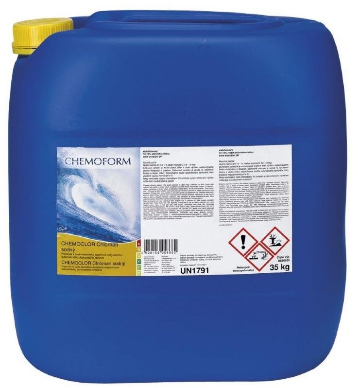 Tekutý chlornan sodný určený k dezinfekci bazénové vody pomocí automatického dávkovacího zařízení. Stabilizovaný pro všechny stupně tvrdosti vody.