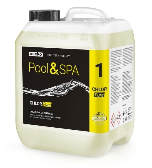 Použití: Chlorová dezinfekce na bázi chlornanu sodného 10%. Pro dezinfekci vody ve všech typech bazénu. Vysoká účinnost proti bakteriím, virům, řasám a plísním. Vyžaduje úpravu pH v rozmezí 6,8 - 7,2. Pri vyšším pH se účinnost snižuje.