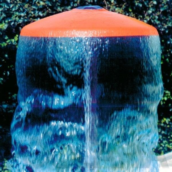 Z leštěné nerezové oceli AISI-316, deštník z červeného polyesterového sklolaminátu.