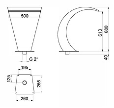 Vodní chrlič, Materiál: Nerez AISI 316L, Napojení (int.): 2 "ex, Rozměry (š/v/h): 500 x 680 x 265 m