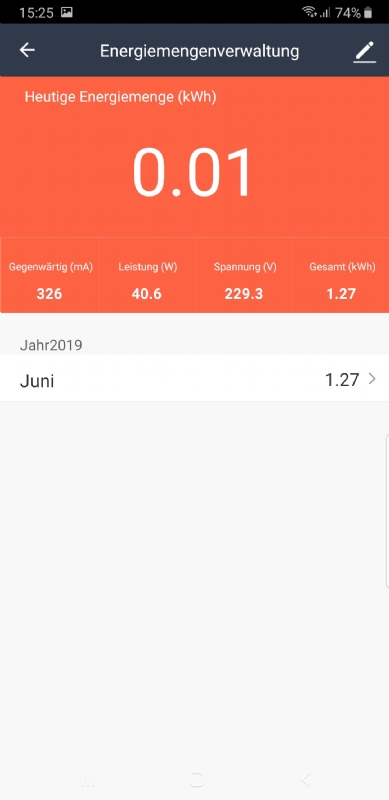 - Ukazatel proudu, napětí, příkonu, spotřeby, denní hodnoty, měsíční