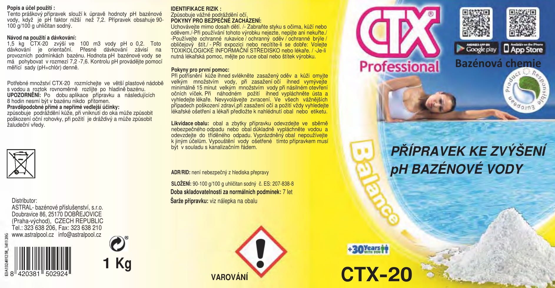 15 g CTX-10 zvýší pH o cca 0,2 ve 1 m3 vody.