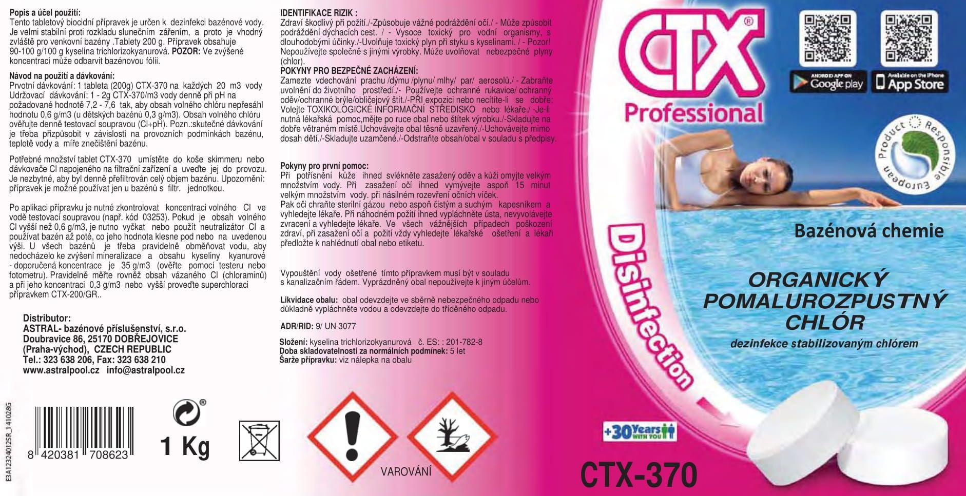 CTX-370 pomalurozpustný organický chlór - 200 g tablety