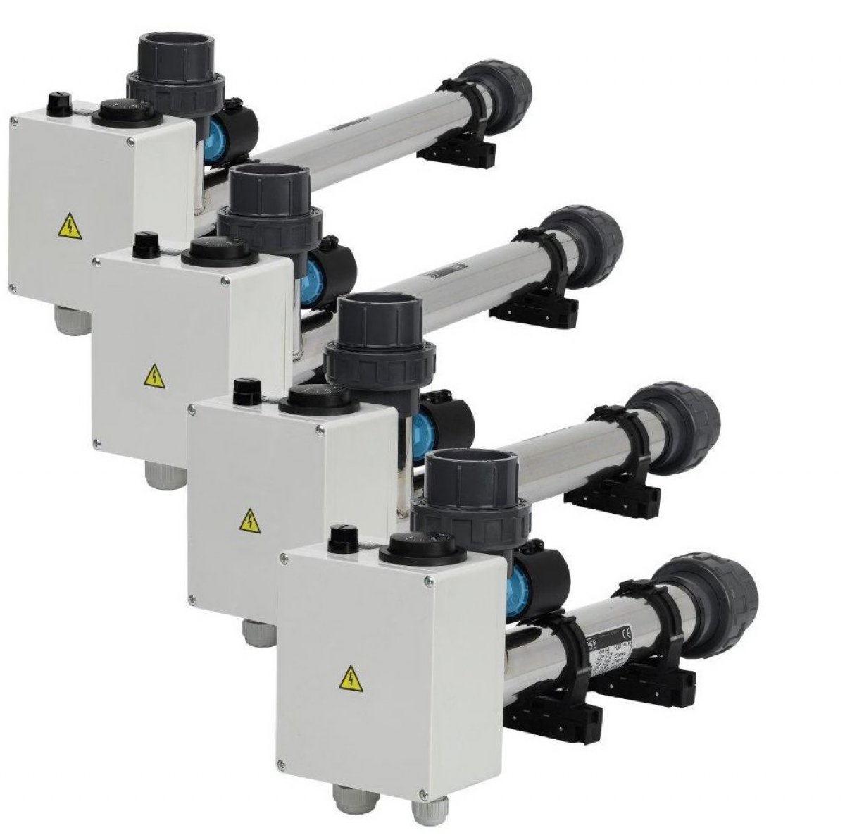 Elektrické průtokové ohřívače jsou určeny k ohřevu vody v bazénech a vířivých vanách, činnost spočívá v ohřevu protékající vody tělesem topení, teplota ohřívané vody je nastavena regulačním termostatem. Topné těleso je spínáno stykačem, který je ovládán výše uvedeným termostatem a bezpečnostním indikátorem průtoku. Z tohoto důvodu je k topení nutná tzv. velká automatika - 24 hodinový programátor filtrace, proudový chránič (ochrana před nebezpečným dotykovým napětím), tepelná ochrana motoru, stykač a spínač topení.