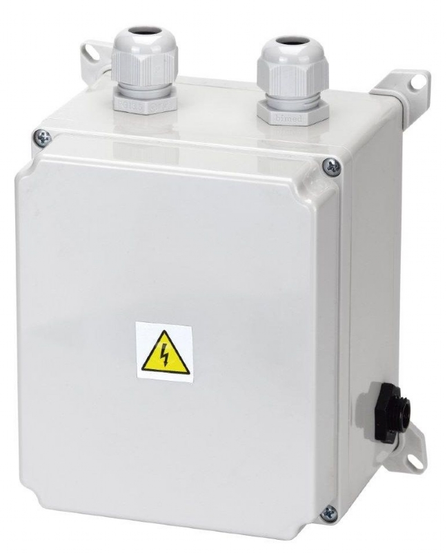 Elektropneumatické ovládání v plastové skříni IP65 pro možnost montáže kamkoli do vlhkého prostředí.