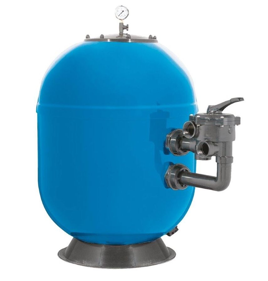 Filtrační nádoba s šesticestným bočním ventilem. Vyztužený sklolaminát s UV povrchovou úpravou. Vyrobeno v EU. Průměr nádoby 680 mm. Množství náplně 175 kg.