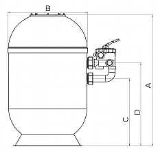 Filtrační nádoba s šesticestným bočním ventilem. Vyztužený sklolaminát s UV povrchovou úpravou. Transparentní metakrylátové horní víko. Vyrobeno v EU. Průměr nádoby 750 mm. Množství náplně 475 kg.
