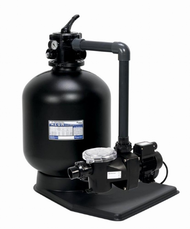 Pro soukromé bazény platí pravidlo, že by se voda měla přefiltrovat 2 - 3x za den. Potřebný minimální výkon čerpadla zjistíte pouhým vydělením Například bazén 3,6 m s hloubkou 1,2 m má objem vody cca 12 m3. Čerpadlo s výkonem 4 m3/h teoreticky přefiltruje celý objem za 3 hodiny. Stačilo by tedy pustit jej na 3 hodiny denně. V praxi má však vliv mnoho faktorů - délka a složitost potrubí, opotřebení filtrační náplně, zařazený solární ohřev, tepelné čerpadlo, salinátor a další. Proto je dobré mít výkon lehce naddimenzovaný. Filtrace by měla být v provozu alespoň 4-6 hodin denně.Pískovou filtraci AZUR KIT 380, 480 a 560 mm je možné sestavit do několika filtračních kitů. Standardně jsou vždy osazeny šesticestným horním ventilem s manometrem. Jako další výbavu je možné zvolit podstavec pod samotný filtr nebo základovou paletu s místem pro umístění čerpadla. U kitů lze individuálně zvolit mezi čerpadly FREEFLO, PREVA a BETTAR. Dále je možné filtraci doplnit propojovacím potrubím mezi filtrem a čerpadlem.