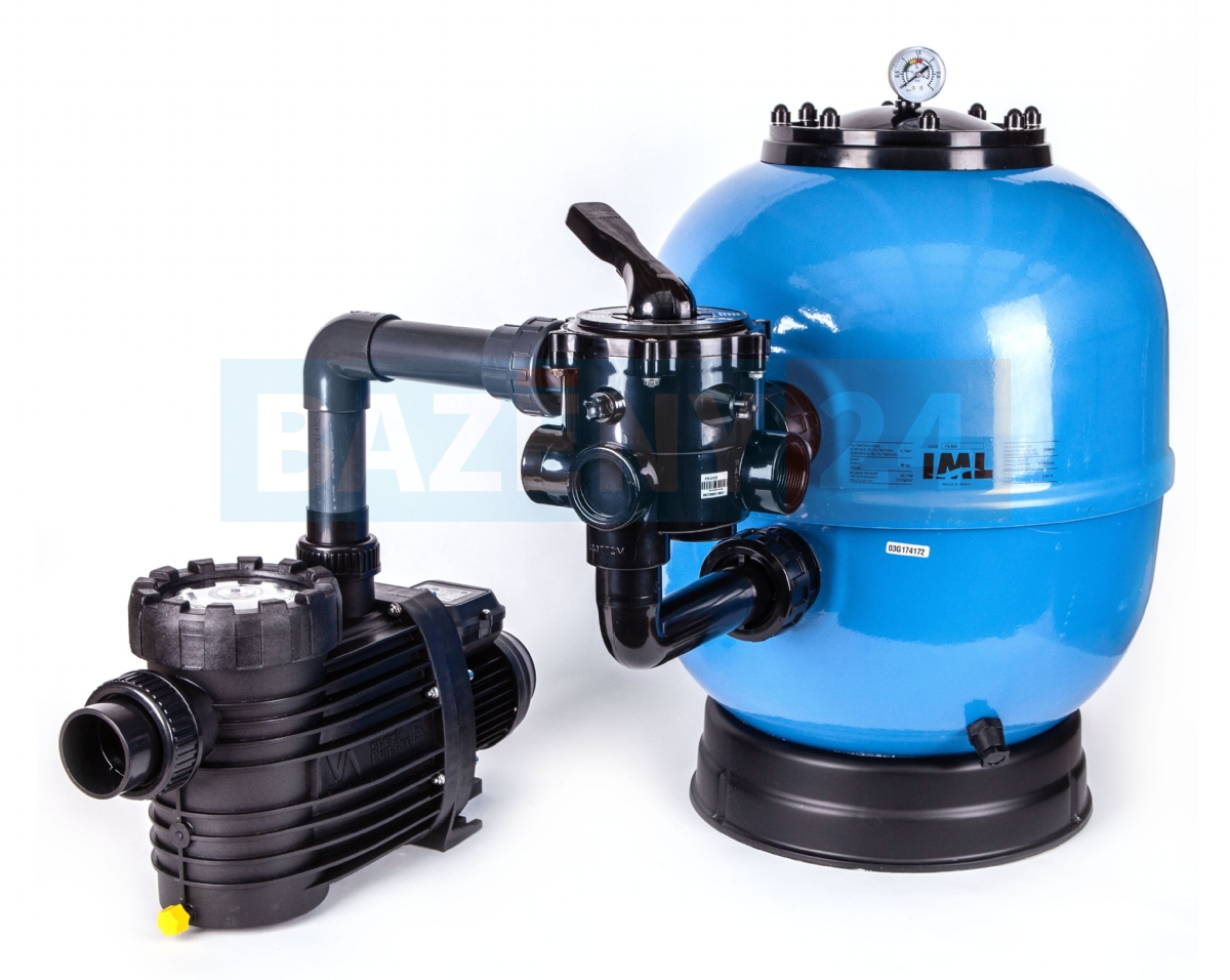 Pro soukromé bazény platí pravidlo, že by se voda měla přefiltrovat 2 - 3x za den. Potřebný minimální výkon čerpadla zjistíte pouhým vydělením Například bazén 3,6 m s hloubkou 1,2 m má objem vody cca 12 m3. Čerpadlo s výkonem 4 m3/h teoreticky přefiltruje celý objem za 3 hodiny. Stačilo by tedy pustit jej na 3 hodiny denně. V praxi má však vliv mnoho faktorů - délka a složitost potrubí, opotřebení filtrační náplně, zařazený solární ohřev, tepelné čerpadlo, salinátor a další. Proto je dobré mít výkon lehce naddimenzovaný. Filtrace by měla být v provozu alespoň 4-6 hodin denně.Filtrační nádoba KIT Lisboa s šesticestným bočním ventilem, manometrem a samonasávacím čerpadlem. Vyrobeno v EU.