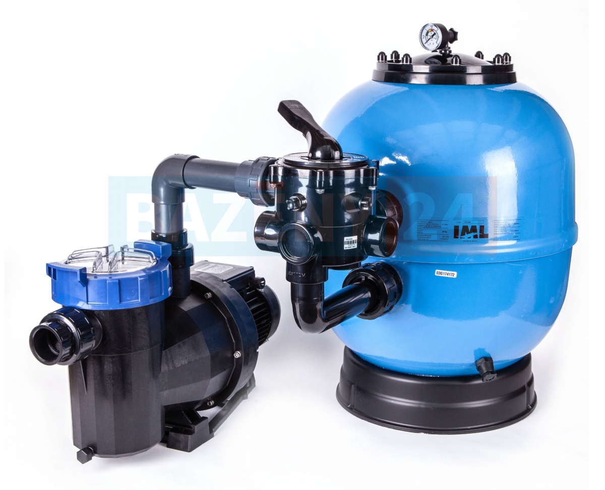Pro soukromé bazény platí pravidlo, že by se voda měla přefiltrovat 2 - 3x za den. Potřebný minimální výkon čerpadla zjistíte pouhým vydělením Například bazén 3,6 m s hloubkou 1,2 m má objem vody cca 12 m3. Čerpadlo s výkonem 4 m3/h teoreticky přefiltruje celý objem za 3 hodiny. Stačilo by tedy pustit jej na 3 hodiny denně. V praxi má však vliv mnoho faktorů - délka a složitost potrubí, opotřebení filtrační náplně, zařazený solární ohřev, tepelné čerpadlo, salinátor a další. Proto je dobré mít výkon lehce naddimenzovaný. Filtrace by měla být v provozu alespoň 4-6 hodin denně.Filtrační nádoba KIT Lisboa s šesticestným bočním ventilem, manometrem a samonasávacím čerpadlem. Vyrobeno v EU.