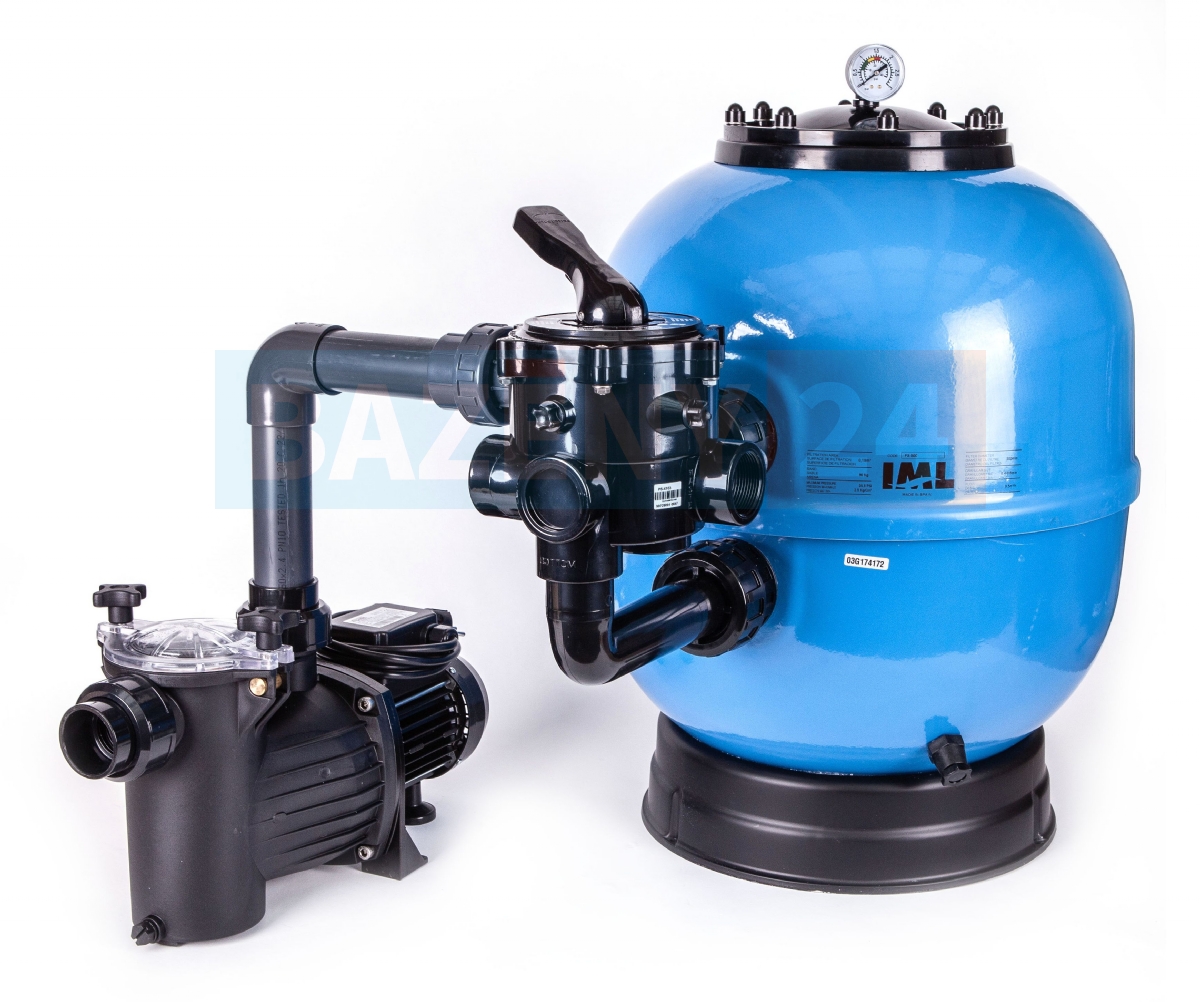 Pro soukromé bazény platí pravidlo, že by se voda měla přefiltrovat 2 - 3x za den. Potřebný minimální výkon čerpadla zjistíte pouhým vydělením Například bazén 3,6 m s hloubkou 1,2 m má objem vody cca 12 m3. Čerpadlo s výkonem 4 m3/h teoreticky přefiltruje celý objem za 3 hodiny. Stačilo by tedy pustit jej na 3 hodiny denně. V praxi má však vliv mnoho faktorů - délka a složitost potrubí, opotřebení filtrační náplně, zařazený solární ohřev, tepelné čerpadlo, salinátor a další. Proto je dobré mít výkon lehce naddimenzovaný. Filtrace by měla být v provozu alespoň 4-6 hodin denně.Filtrační nádoba KIT Lisboa s šesticestným bočním ventilem, manometrem a samonasávacím čerpadlem. Vyrobeno v EU.