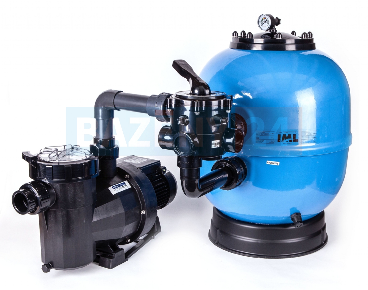 Pro soukromé bazény platí pravidlo, že by se voda měla přefiltrovat 2 - 3x za den. Potřebný minimální výkon čerpadla zjistíte pouhým vydělením Například bazén 3,6 m s hloubkou 1,2 m má objem vody cca 12 m3. Čerpadlo s výkonem 4 m3/h teoreticky přefiltruje celý objem za 3 hodiny. Stačilo by tedy pustit jej na 3 hodiny denně. V praxi má však vliv mnoho faktorů - délka a složitost potrubí, opotřebení filtrační náplně, zařazený solární ohřev, tepelné čerpadlo, salinátor a další. Proto je dobré mít výkon lehce naddimenzovaný. Filtrace by měla být v provozu alespoň 4-6 hodin denně.Filtrační nádoba KIT Lisboa s šesticestným bočním ventilem, manometrem a samonasávacím čerpadlem. Vyrobeno v EU.
