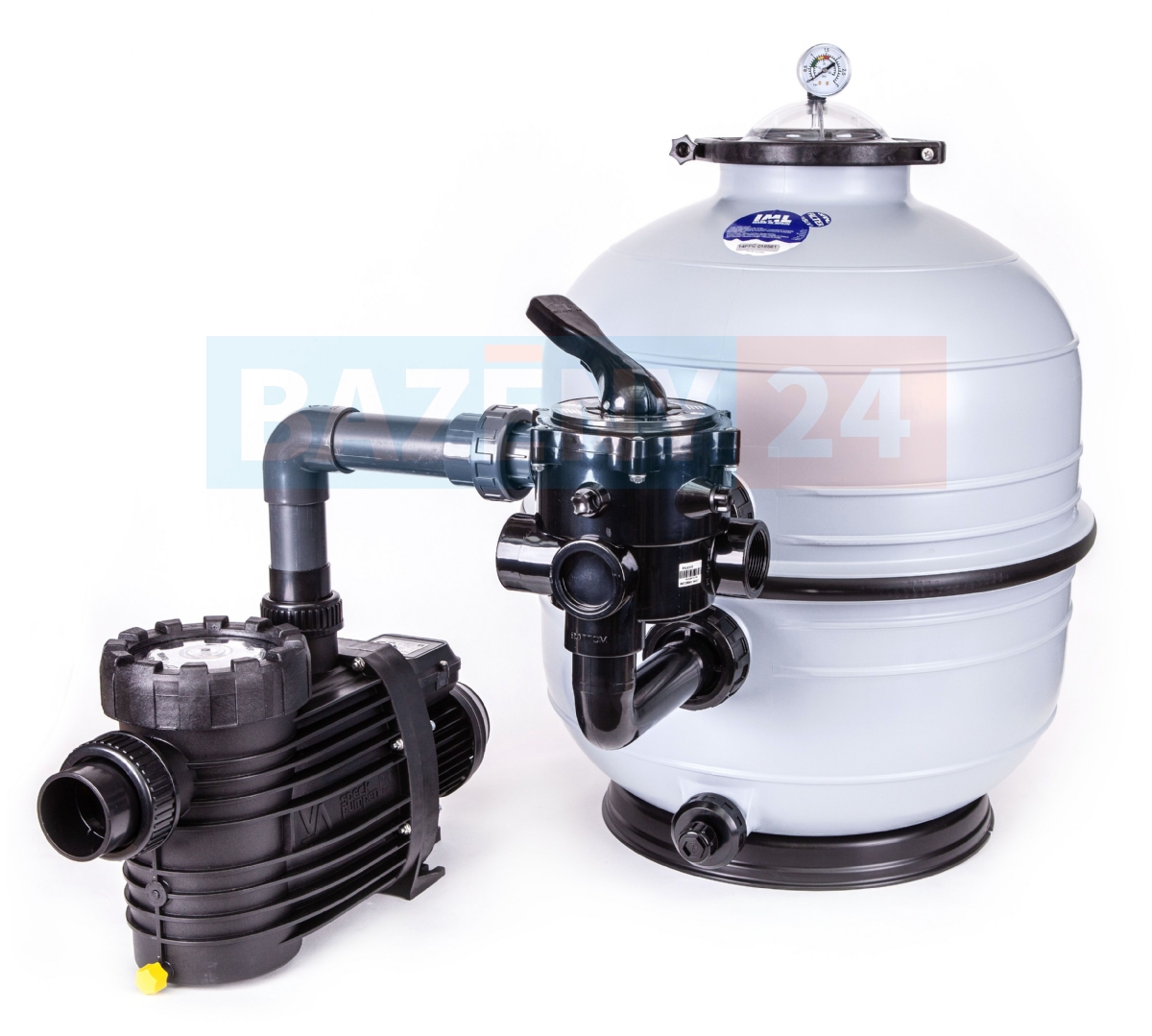 Pro soukromé bazény platí pravidlo, že by se voda měla přefiltrovat 2 - 3x za den. Potřebný minimální výkon čerpadla zjistíte pouhým vydělením Například bazén 3,6 m s hloubkou 1,2 m má objem vody cca 12 m3. Čerpadlo s výkonem 4 m3/h teoreticky přefiltruje celý objem za 3 hodiny. Stačilo by tedy pustit jej na 3 hodiny denně. V praxi má však vliv mnoho faktorů - délka a složitost potrubí, opotřebení filtrační náplně, zařazený solární ohřev, tepelné čerpadlo, salinátor a další. Proto je dobré mít výkon lehce naddimenzovaný. Filtrace by měla být v provozu alespoň 4-6 hodin denně.Filtrační SADA obsahuje