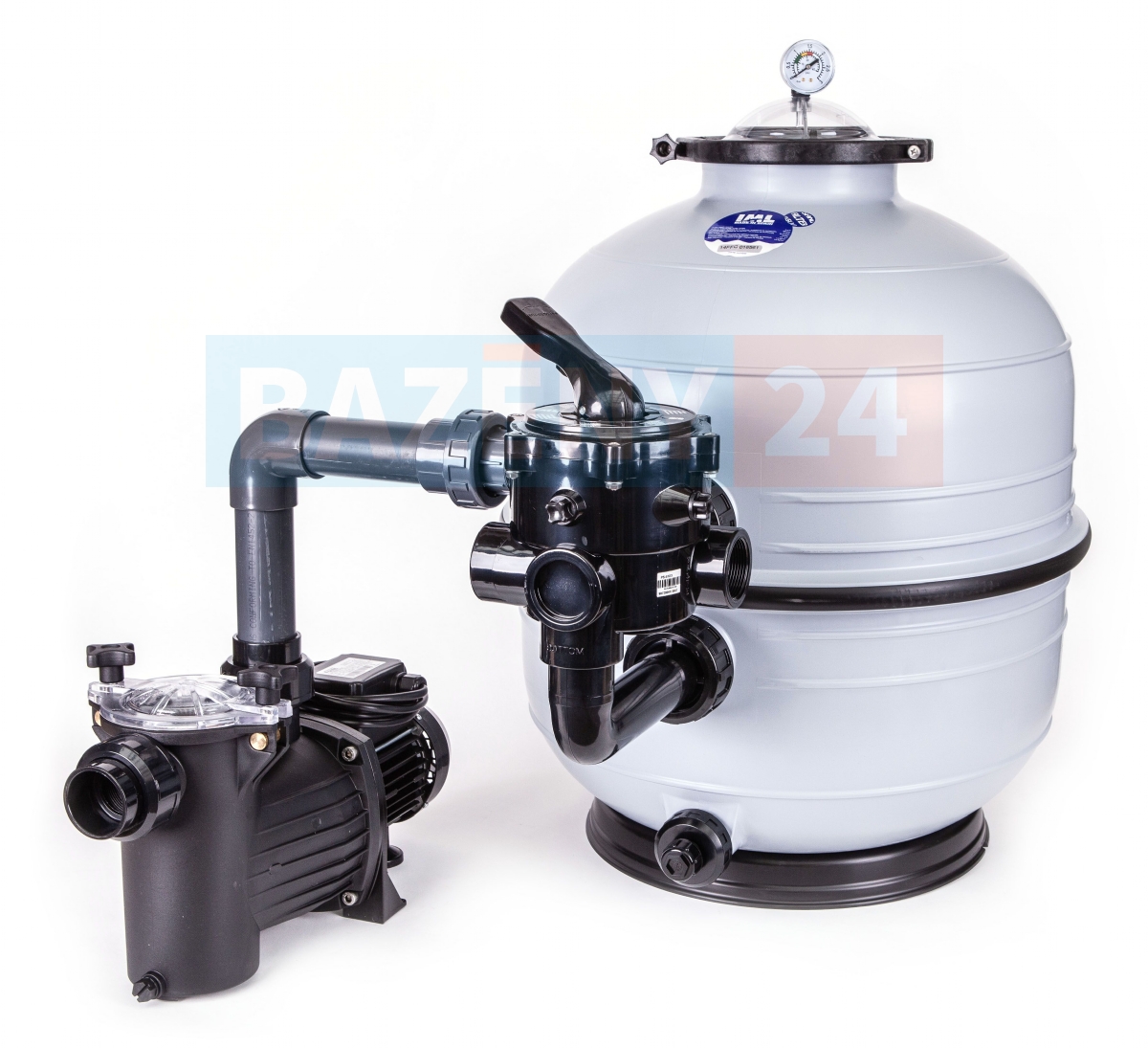 Pro soukromé bazény platí pravidlo, že by se voda měla přefiltrovat 2 - 3x za den. Potřebný minimální výkon čerpadla zjistíte pouhým vydělením Například bazén 3,6 m s hloubkou 1,2 m má objem vody cca 12 m3. Čerpadlo s výkonem 4 m3/h teoreticky přefiltruje celý objem za 3 hodiny. Stačilo by tedy pustit jej na 3 hodiny denně. V praxi má však vliv mnoho faktorů - délka a složitost potrubí, opotřebení filtrační náplně, zařazený solární ohřev, tepelné čerpadlo, salinátor a další. Proto je dobré mít výkon lehce naddimenzovaný. Filtrace by měla být v provozu alespoň 4-6 hodin denně.Filtrační SADA obsahuje