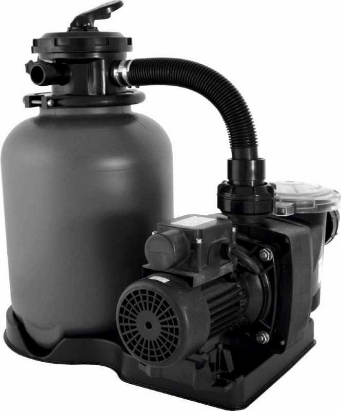 Pro soukromé bazény platí pravidlo, že by se voda měla přefiltrovat 2 - 3x za den. Potřebný minimální výkon čerpadla zjistíte pouhým vydělením Například bazén 3,6 m s hloubkou 1,2 m má objem vody cca 12 m3. Čerpadlo s výkonem 4 m3/h teoreticky přefiltruje celý objem za 3 hodiny. Stačilo by tedy pustit jej na 3 hodiny denně. V praxi má však vliv mnoho faktorů - délka a složitost potrubí, opotřebení filtrační náplně, zařazený solární ohřev, tepelné čerpadlo, salinátor a další. Proto je dobré mít výkon lehce naddimenzovaný. Filtrace by měla být v provozu alespoň 4-6 hodin denně.Kompletní pískové filtrační zařízení WM 300 pro malé nadzemní bazény. Filtrační nádoba je vyrobena z polypropylenu a je vybavena šesticestným ovládacím ventilem. Součástí sady je filtrační čerpadlo FreeFlo s průtokem 4m<sup>3</sup>/h.