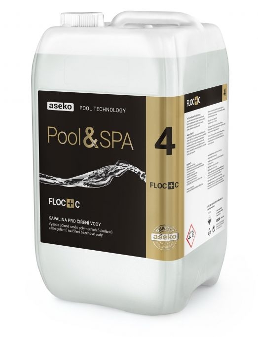 FLOC+C je vysoce účinná směs polymerních flokulantů a koagulantu na čiření bazénové vody. Odstraňuje i ten nejjemnější zákal tím, že ho shlukuje do pevných vloček, které se zachytí na filtru. Vysoká účinnost je výsledkem dlouholetého vývoje společnosti ASEKO.